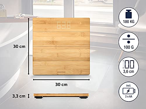 Confezione - Soehnle bilancia pesapersone Style Sense Bamboo Magic, in vero bambù naturale, batterie incluse, accensione e spegnimento automatici, massimo 180 kg, articolo numero 63880
