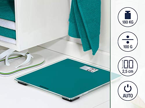 Soehnle Style Sense Compact 200 Bilancia pesapersone, Bilancia digitale display LCD, Bilancia pesa persona digitale piedi antiscivolo, verde smeraldo