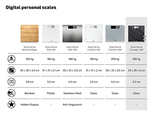 Soehnle Style Sense Compact 300 Bilancia pesapersone, Bilancia digitale display LCD, Bilancia pesa persona digitale piedi antiscivolo, nero Slate