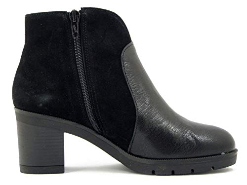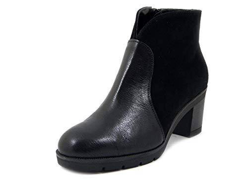 Soffice Sogno, Stivaletto Tronchetto Donna in Pelle e Camoscio Nero, Tacco Medio 6 cm e Plateau, Made in Italy