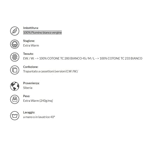 ✨COMPOSIZIONE ✨i piumini Gilda top extra warm sono in 100% piumino d'oca BIANCO SIBERIANO (La piuma BIANCA è più pregiate e leggera della SILVER o grigia) classe1, finemente selezionata per offrire un piumino morbido, soffice e caldo anzi caldissimo