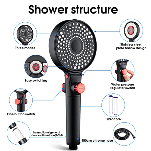 Soffione Doccia, Soffione Doccia Anticalcare Soffione Doccia Alta Pressione con 2 Filtro 3 Tipi di Getto Soffione Doccia con 1,5m Tubo Multi-Functional Risparmio Idrico Shower Head SPA Doccino