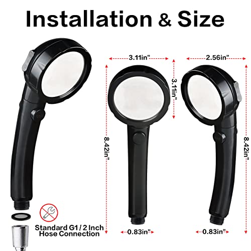 【Facile installazione】: il soffione doccia rimovibile ad alta pressione è facile da installare, nessun attrezzo richiesto, l'installazione di questo soffione doccia nero richiede solo pochi minuti. Adatto per bracci doccia con standard di interfaccia G1/2" (tubo e supporto non sono inclusi). Davvero pratico per l'uso quotidiano e la pulizia regolare.
