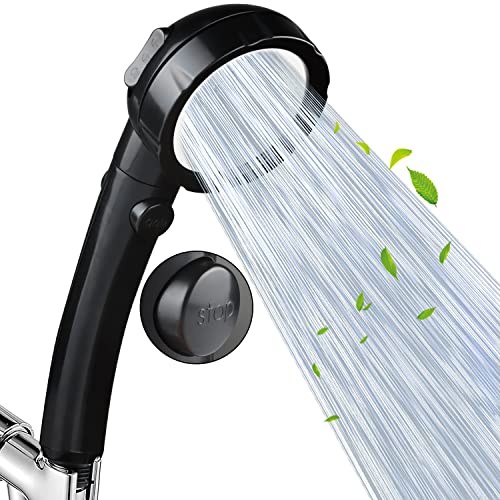 Soffione doccia nero con doccetta a 3 getti, con interruttore on/off, soffione doccia rimovibile ad alta pressione con finitura cromata, accessori da bagno 1,6 GPM (nero)
