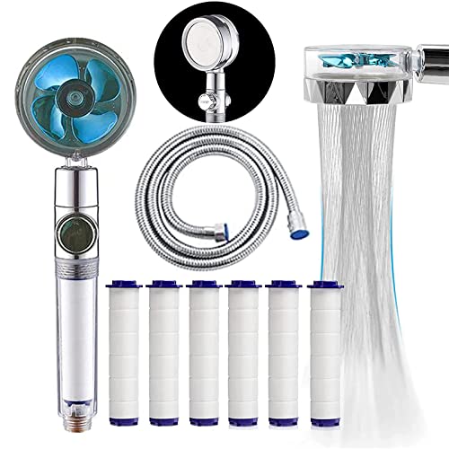 Soffione Doccia, Doccino per Doccia ad Elica ad Alta Pressione, Risparmio Idrico Doccia, Soffione Doccia Anticalcare Girevole a 360 °, con 6 Elementi Filtranti in Cotone PP, 1.5m Tubo