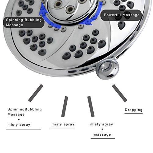 Soffione per doccia fisso con getto massaggiante rotante ad alta pressione. Impulso gorgogliante per un potente massaggio. Soffione a muro per doccia a pioggia con 6 funzioni, cromato di alta qualità