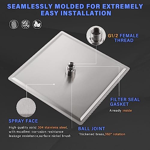 ️【DESIGN ROTABILE】Lo snodo sferico in ottone ispessito è robusto e durevole, quindi non c'è da preoccuparsi che si rompa o perda. Soffione doccia fisso alta pressione Consente di regolare le diverse angolazioni del soffione doccia grande, offrendo una varietà di esperienze di doccia.
