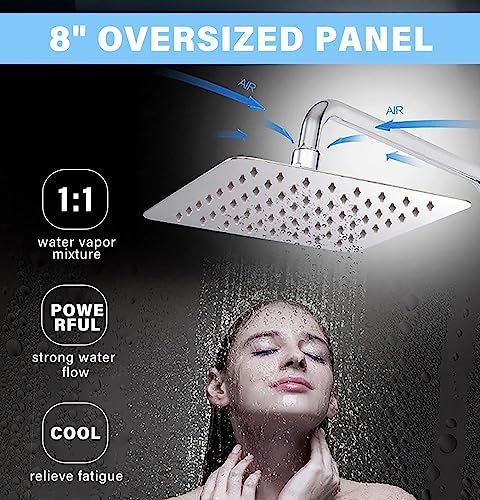 Soffione Doccia Fisso a Pioggia -20 cm Grande ad Alta Pressione, Anticalcare in acciaio inox 304,Testa Regolabile 360°,Silicone Anti-Blocco