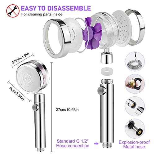 Soffione Doccia con Tubo Flessibile da 1.5m,2 Modelli di Spray, Soffione Doccia alta Pressione a risparmio idrico, con funzionedi arresto dell'acqua e piastra di uscita dell'acqua di ricambio