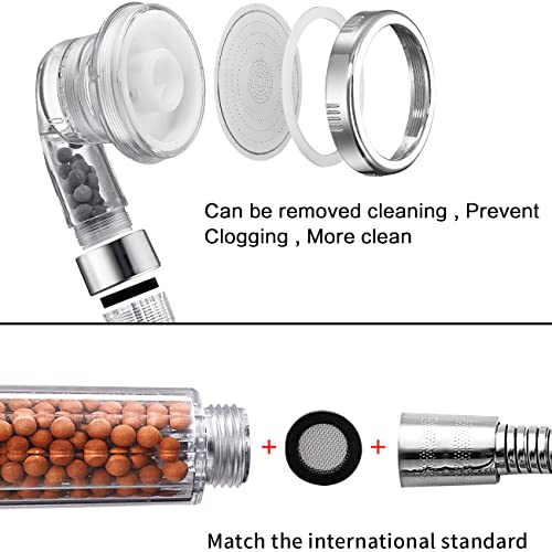 Soffione doccia, Lonic filtro ad alta pressione palmare soffione doccia spray doccetta a vie con sfere minerali ioni per pelli secche e capelli da Vikily