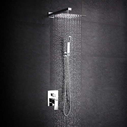 Soffione doccia a pioggia, anticalcare, in acciaio inox, rotondo, orientabile, 1/2", soffione doccia cromato per bagno, 30 x 30 cm