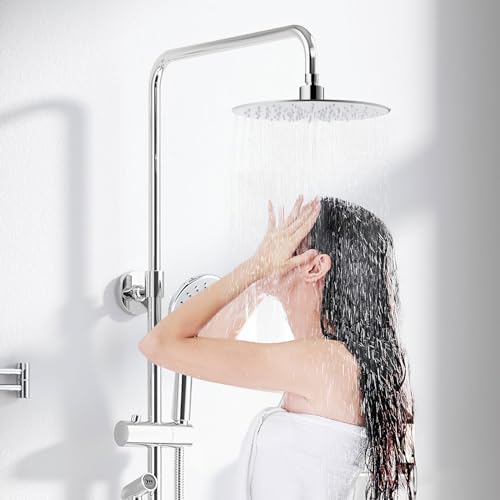 Grande e sottile con flusso d'acqua elevato: il soffione è super grande con 20 x 20 cm e copre completamente il corpo. La combinazione di tecnologia ultrasottile e di aspirazione dell'aria crea una forte pressione dell'acqua, pressione dell'acqua carica e una potente doccia per un bagno meraviglioso.