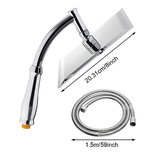 Soffione doccia con tubo - Soffione a pioggia quadrata 8 pollici con doccetta in acciaio inox, soffione doccia a risparmio acqua, alta pressione 1,5 m, potente soffione per il bagno (argento)