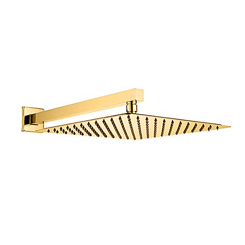 Soffione Doccia a Pioggia Quadrato Anticalcare Testa Doccia a Pioggia 304 Acciaio Inox Ultra Sottile Testa di Doccia Alta Pressione Wall Mount Soffione Doccia Docce Fisse,d'oro,8 Inches