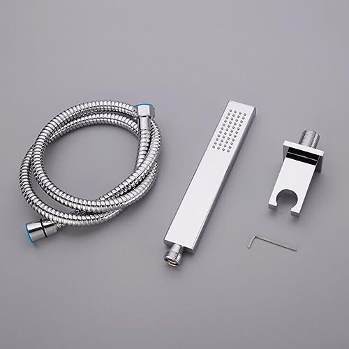 Soffione doccia portatile con tubo lungo 1,5 metri e staffa di supporto, soffione di ricambio per vasca da bagno sistema doccia stile quadrato cromato lucido