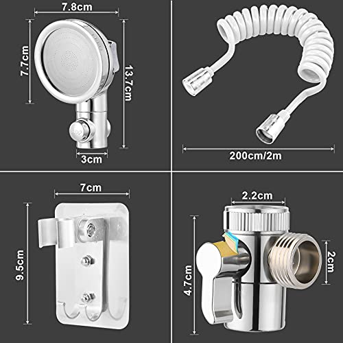 Soffione Doccia alta Pressione con Accessori Completi: Separatore d'acqua, Tubo retrattile da 2m, Supporto in gomma, Mini Doccia (escluso rubinetto)