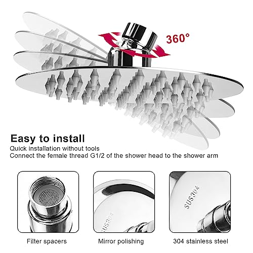 Facile Installazione: Soffione doccia quadrato installazione rapida senza attrezzi, collega la filettatura interna G1/2 del soffione doccia al braccio doccia e sei pronto per l'uso.