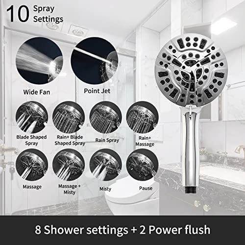 Soffione Doccia Alta Pressione con 10 spruzzi Handheld Soffione Doccia Universale Risparmio Idrico Anticalcare Doccetta per Doccia Pattern Bath Massage SPA Grande Soffione Cromato