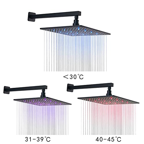Soffione Doccia Led, 40cm Doccia Soffione Quadrato Controllo Della Temperatura, Soffione Doccia Nero Con Braccio Doccia, Bagno Doccia 3 Colore Cambiando Flusso D'Acqua Alimentato, Acciaio Inossidabile