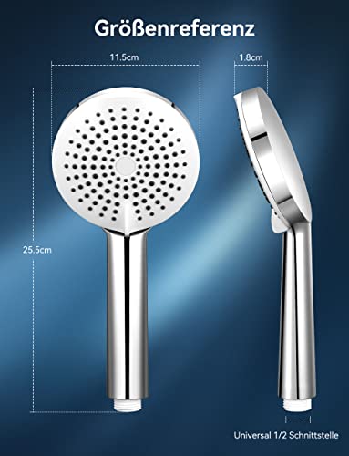 5 modalità di spruzzo: il nostro soffione doccia manuale ha 5 impostazioni commutabili (lavaggio ad alta pressione, pioggia, massaggio, massaggio + pioggia, interruttore di pausa). Ruotare la pagaia con una sola mano. Per proteggere il tubo, si consiglia di svitare il rubinetto dopo la doccia e di non rimanere a lungo sull'interruttore di pausa