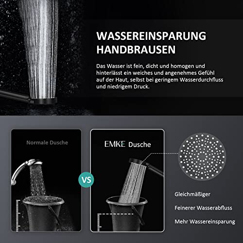 Soffione doccia grande: il soffione rotondo EMKE ha un diametro di 12 cm e offre quindi un'area doccia più ampia rispetto ai tradizionali soffioni e garantisce un'esperienza di doccia più confortevole. La doccetta EMKE è dotata di ugelli in silicone che impediscono efficacemente l'intasamento da depositi di calcare e possono essere rimossi con un panno delicato, rendendo la pulizia facile e comoda e risparmiando tempo.