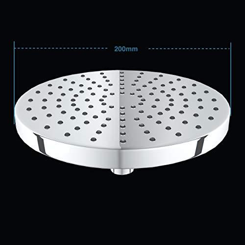 Soffione doccia da 200 mm di diametro di dimensioni generose.