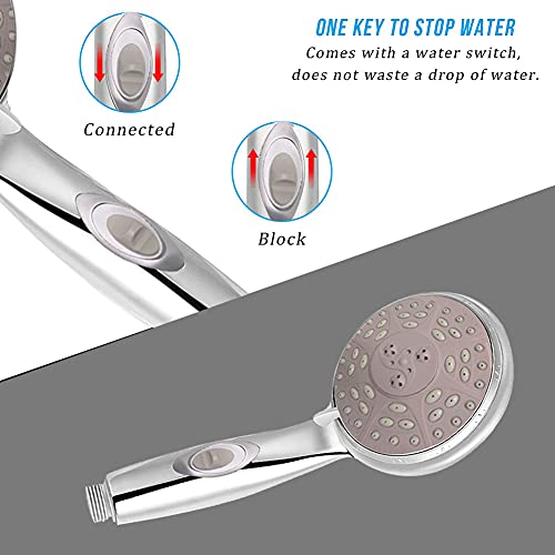 Soffione Doccia, Testa Doccia a Mano ad Alta Pressione, Testa Doccetta di Manopola con Funzione Interruttore e Arresto Acqua Multifunzionale ad Sovralimentare Massaggio Universale per Bagno