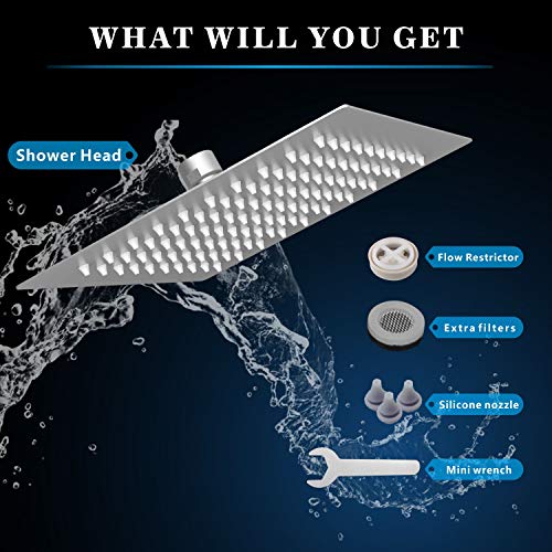 CONFEZIONE INCLUSA -- Soffione quadrato da 8'', mini chiave, filtri extra, manuale d'uso.