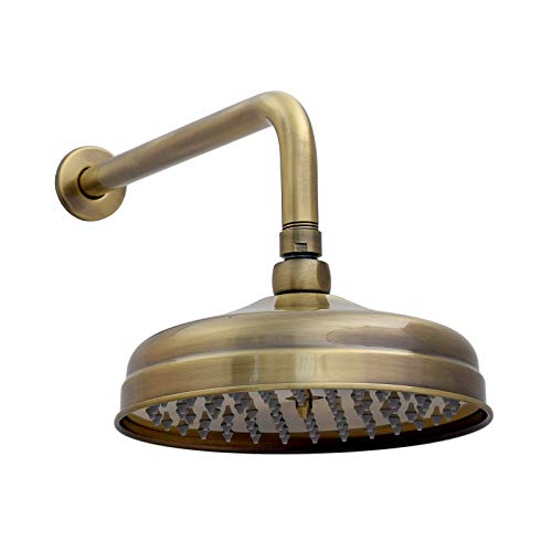 Attacco standard britannico da 1/2", diametro di 8 cm, braccio doccia in ottone massiccio 300 mm.