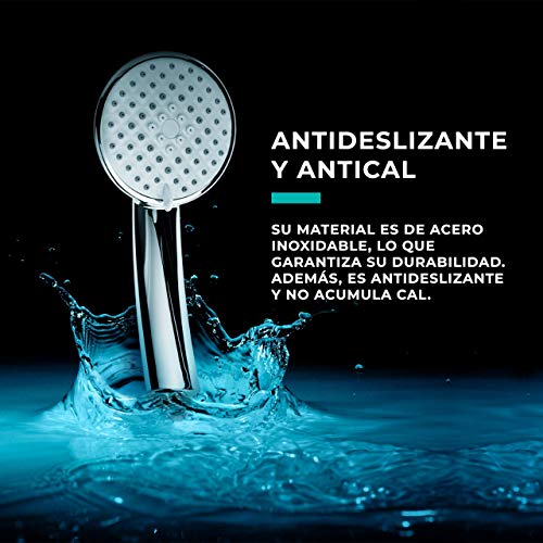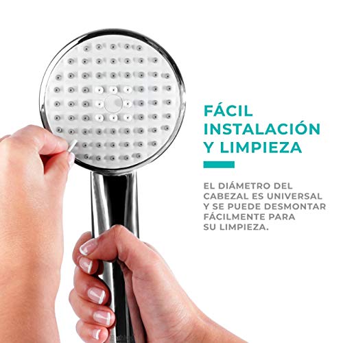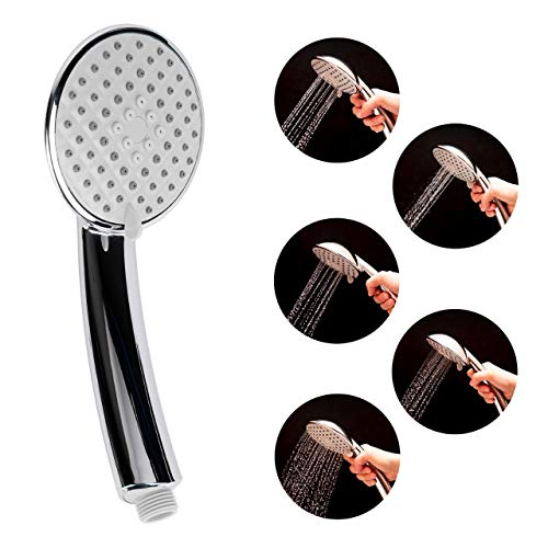 Soffione ad alta pressione con 5 funzioni. Soffione doccia a mano con risparmio idrico del 30% e antiscivolo. Doccetta anticalcare con finitura cromata. Facile pulizia e installazione.