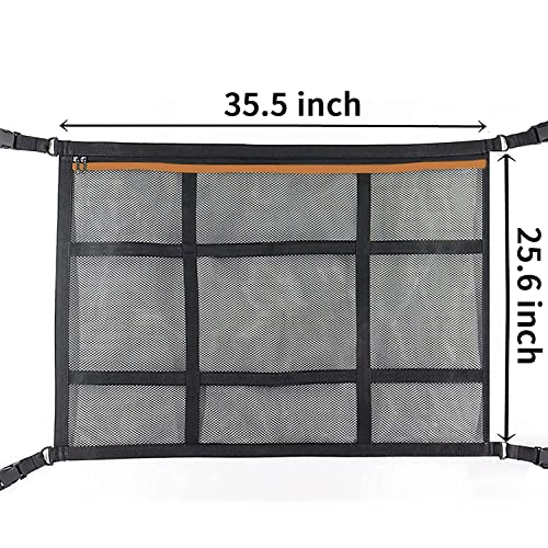 [Risparmio di spazio]: la dimensione è 35,5x25,6 pollici, che non ostruisce la linea di vista o lo spazio disponibile. Il design della rete portaoggetti del soffitto consente di riporre molti oggetti di forma irregolare, risparmiare spazio e rendere l'auto più ordinata e comoda senza dover salire sul sedile posteriore e cercarla nel bagagliaio.