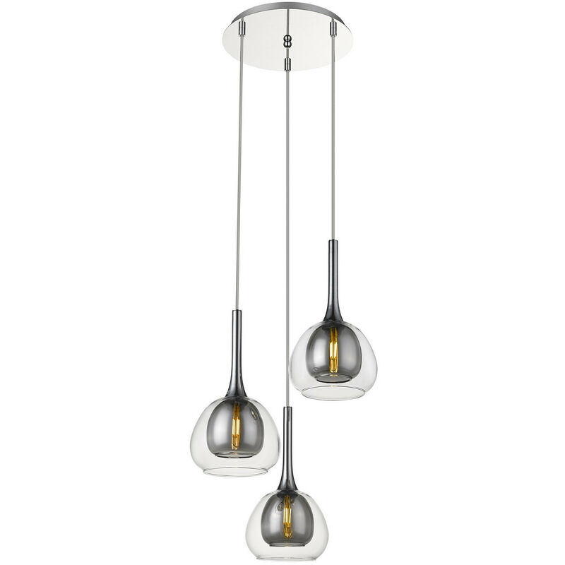 Spring Lighting Soffitto a Sospensione Cluster Contemporaneo 3 Luci Grigio Fumè, Vetro | Finitura: Grigio Fumè | Materiale: vetro, metallo | Grado di protezione IP: IP20 | Altezza minima: 26,5 cm | Altezza massima: 121 cm | Diametro paralume: 17 cm | Altezza paralume: 14 cm | Tipo di lampada: E14 | N. di lampade: 3 | Lampadina inclusa: no | Dimmerabile: Sì - Necessaria una lampadina dimmerabile | Peso: 2,3 kg | Potenza (max): 40 W