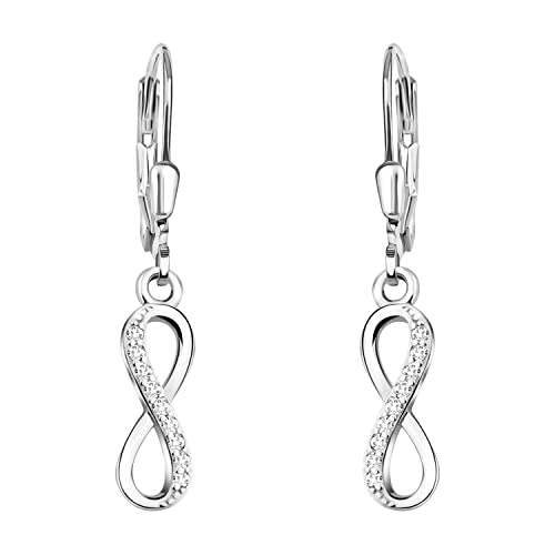 ELEGANTI & SENZA TEMPO - Orecchini Pendenti alla moda con pietra zirconia - motivo ad infinito - adatti per ogni occasione e combinazione