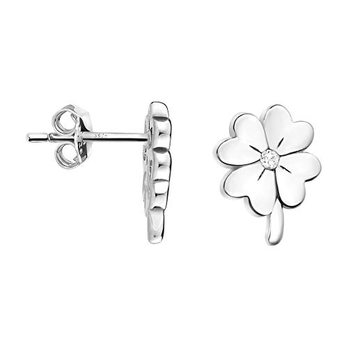 SOFIA MILANI - Orecchini da Donna in Argento 925 - con Pietra Zircone - Orecchini a Perno a Fiore Quadrifoglio - 20990