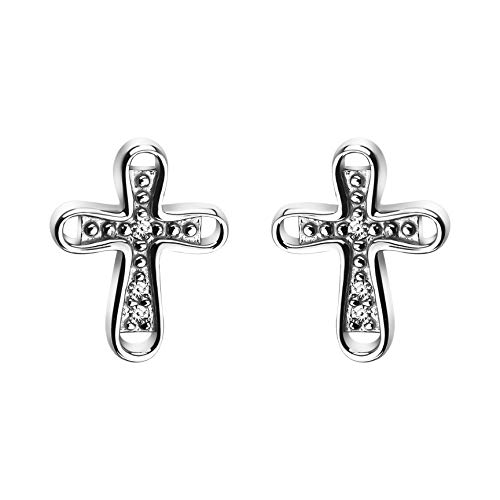 ELEGANTI & SENZA TEMPO - Orecchini a Perno alla moda con pietra zirconia - motivo a croce - adatti per ogni occasione e combinazione