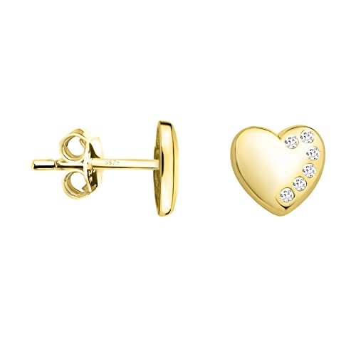 ELEGANTI & SENZA TEMPO - Orecchini a perno alla moda placcati in oro con pietra zirconia - design a cuore - adatti per ogni occasione ed abbinamento