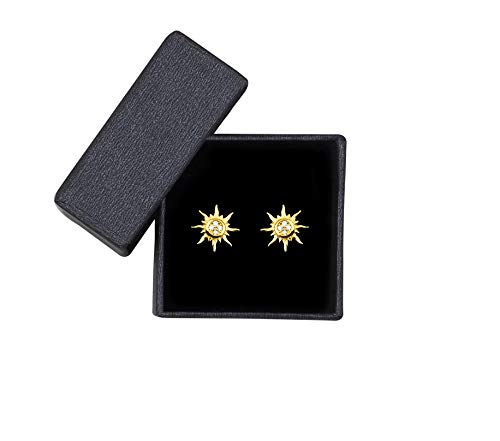 ELEGANTI & SENZA TEMPO - Orecchini a Perno alla moda placcati in oro con pietre zirconia - motivo a stella sole - adatti per ogni occasione e combinazione