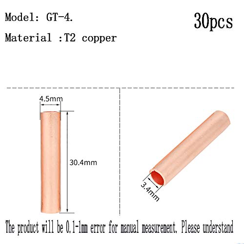 SOFIALXC - Tubo in rame diametro esterno 4,5 mm, diametro interno 3,4 mm, lunghezza 30,4 mm, 30 pezzi, GT4