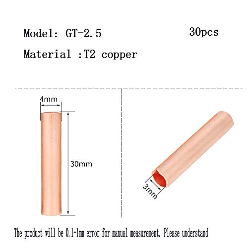 SOFIALXC - Tubo in rame diametro esterno 4 mm, diametro interno 3 mm, lunghezza 30 mm, 30 pezzi, GT2.5