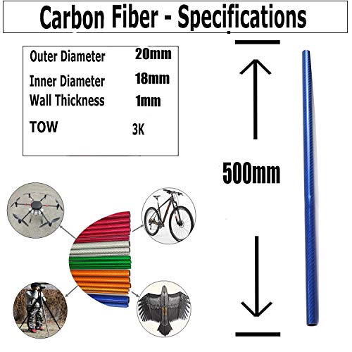 SOFIALXC Blu Tubo in Fibra di Carbonio per Quadcopter Rc Airplanes Superficie Lucida (2 Pezzi)- 20X18X500mm