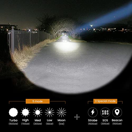 Sofirn SF47T Torcia led a Lunga Distanza, Torcia Tattica Super Luminosa da 1500 Lumen, Distanza di Illuminazione 1100 m, con 2 batterie Ricaricabili 21700, per caccia, soccorso, emergenza