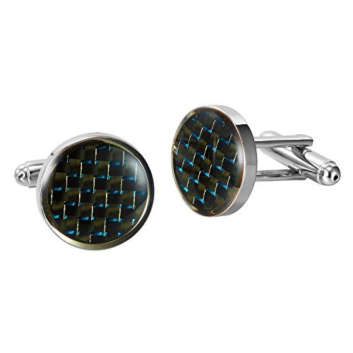 Sofisticata Rotonda in Fibra di Carbonio Nero e Acciaio Inossidabile 316L Gemelli per Gli Uomini