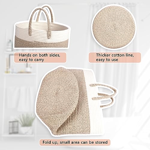 Sofore Cesto Portabiancheria, Grande 40L Cesta Portaoggetti Cotone Pieghevole con Manico Cesto per Biancheria da Bagno Lavanderia per Libri, Giocattoli, Coperte Oggetti,Cachi+bianco