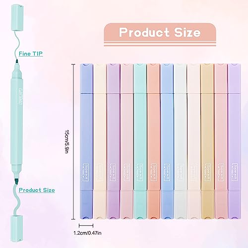 Sofore Evidenziatori Pastello Set, 12 Pezzi Colorati Evidenziatori a Doppia Testa Pennarelli Piazza con 10 Segnalibri Colorati per Riviste, Libri di Consultazione, Scuola, Ufficio