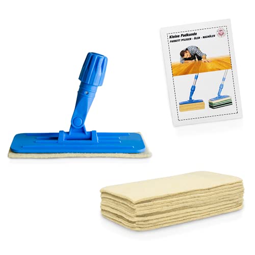Soft-Sheep, supporto per cialde Pro con supporto per manico - Set di oli per parquet (10 morbidi tamponi di lana + supporto per cuscinetti), ideale per oli per la cura del parquet,