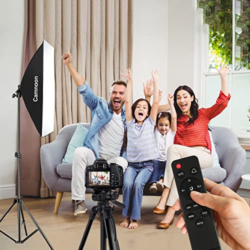 Softbox Fotografico Set, Camnoon Luci Set Studio Fotografico con 2x85W 3000K-6000K Luce LED a Temperatura Bi-colore, 2x50x70cm Softbox, 2x2M Stand per Luce, Borsa da Trasporto, per Ritratti/Video