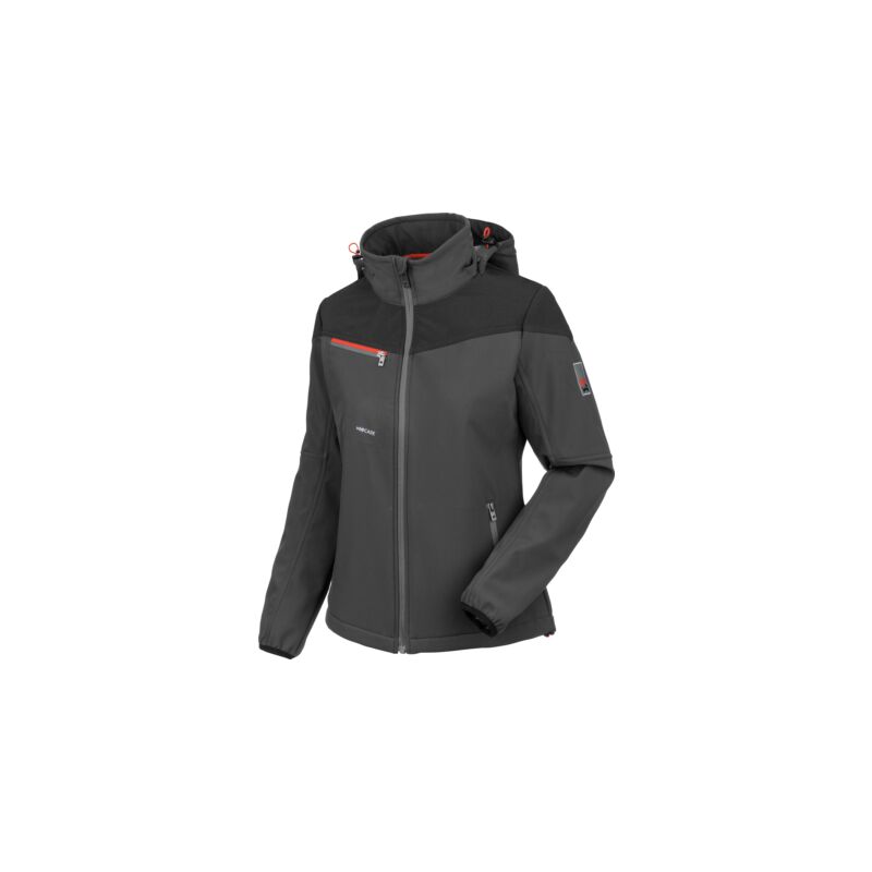 Giacca in softshell da donna Stretch X antracite Giacca in softshell Stretch X, giacca modello da donna impermeabile e traspirante. Punti di forza: 3 tasche esterne con zip e capiente tasca interna OEKO-TEX® STANDARD 100 18.0.58839 Hohenstein HTTI badgeholder clips, cappuccio staccabile impermeabilità 8.000 mm colonna d'acqua, traspirabilità 4.000 MVP inserti riflettenti, polsini elastici e fondo con coulisse tasca portacellulare in tessuto e-care Composizione: 96% poliestere, 4% elastane - 280 g/m²