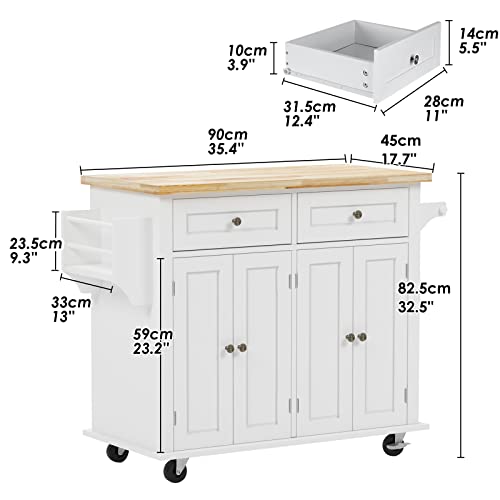 SogesHome Carrello da cucina mobile per isole da cucina carrello da cucina credenza buffet carrello da bar con ruote grande piano di lavoro porta asciugamani portaspezie 2 cassetti armadi a 2 ante