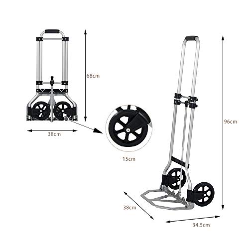 Carrello Dimensioni:Formato non piegato: 38 x 34.5 x96 cm, altezza piegata: 38 cm,diametro della ruota: 15 cm.