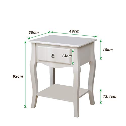SogesHome Comodini in legno con cassetti e armadietti Tavolini da letto Bianco, classico con ripiano aperto per soggiorno e camera da letto, 49 cm x 38 cm x 62 cm
